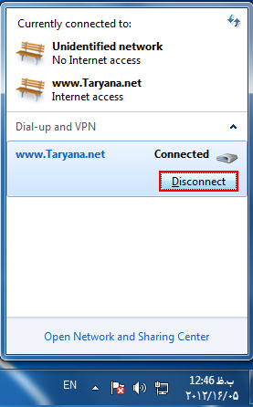 - بر روی کانکشن موردنظر که ایجاد کرده اید کلیک کنید . حال دکمه Disconnect که نمایش داده شده را کلیک نمایید .