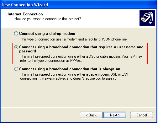 6. از پنجره نحوه اتصال گزینه انتخاب شده را انتخاب نمائید و دکمه Next را فشار دهید.